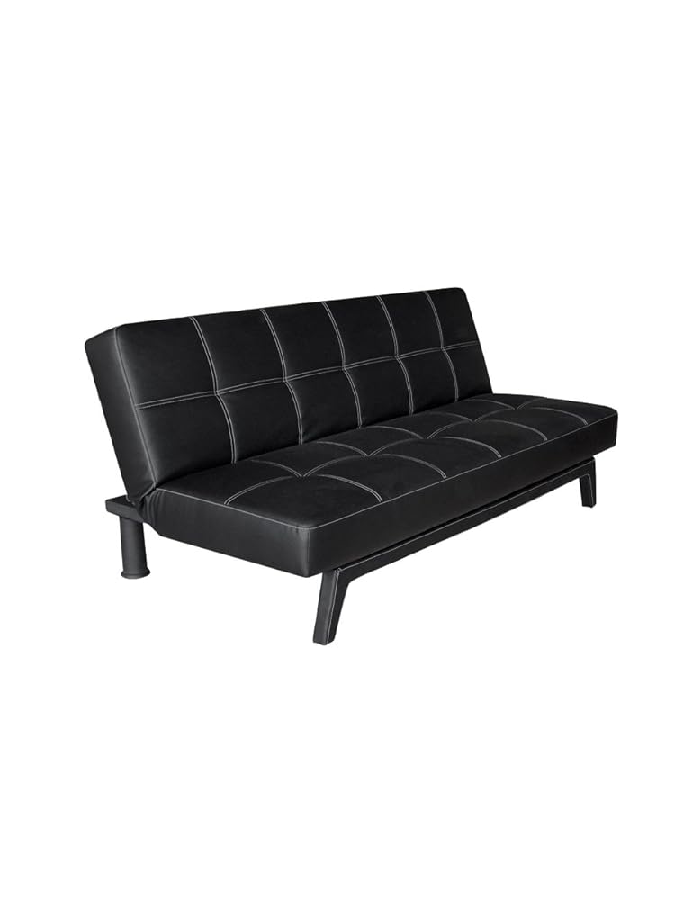 Transitionally designed sofa sleeper has track arms. Converts into a full size bed with the touch of a hand. Tapered wooden legs with an espresso finish. Sofa sleeper is a very versatile piece of furniture that has a three position hinge which allows you to sit, lounge or sleep 2 comfortably. 10-inch pillow top seat cushion for extra comfort. Covered in a 100-percent polyester high performance Black microfiber. No bar in the back for added sleeping comfort. Upholstered back and arms for center of the room placement. Cushion accommodates full size sheets for sleeping. All powder coated steel seat and back frames and metal to metal connections for strength and durability. Innovative engineering and design enables this sofa to fit through an 8 inch opening. and efficient product design uses less fossil fuel based components in construction and delivery. Various components are recyclable at the end of use. Each piece ships in one (1) box. Assembly required. Includes 2 decorative throw pillows. Welcome to Handy Living: Your kind of furniture. Right. Now. Their goal is simple: put full size upholstered furniture in a single box that will ship via common carrier to every doorstep. Handy Living has made everyday furniture exciting and different. They believe furniture should be stylish and fun. It should be affordable. It should be easy to deliver quickly and conveniently in a single box - and ridiculously easy to assemble. And it should be environmentally responsible. Handy Living - Thinking Inside the Box.
